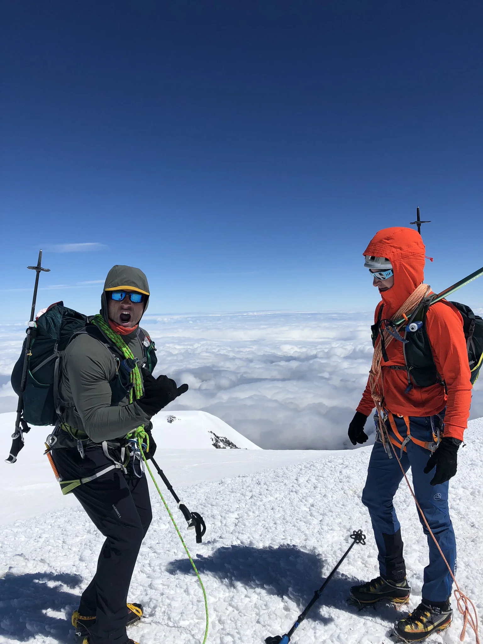 Rocking my first Mountain kit for the first summit of Rainier - Including the Zeal Caddis and Merrell Hyperlight Windshirt